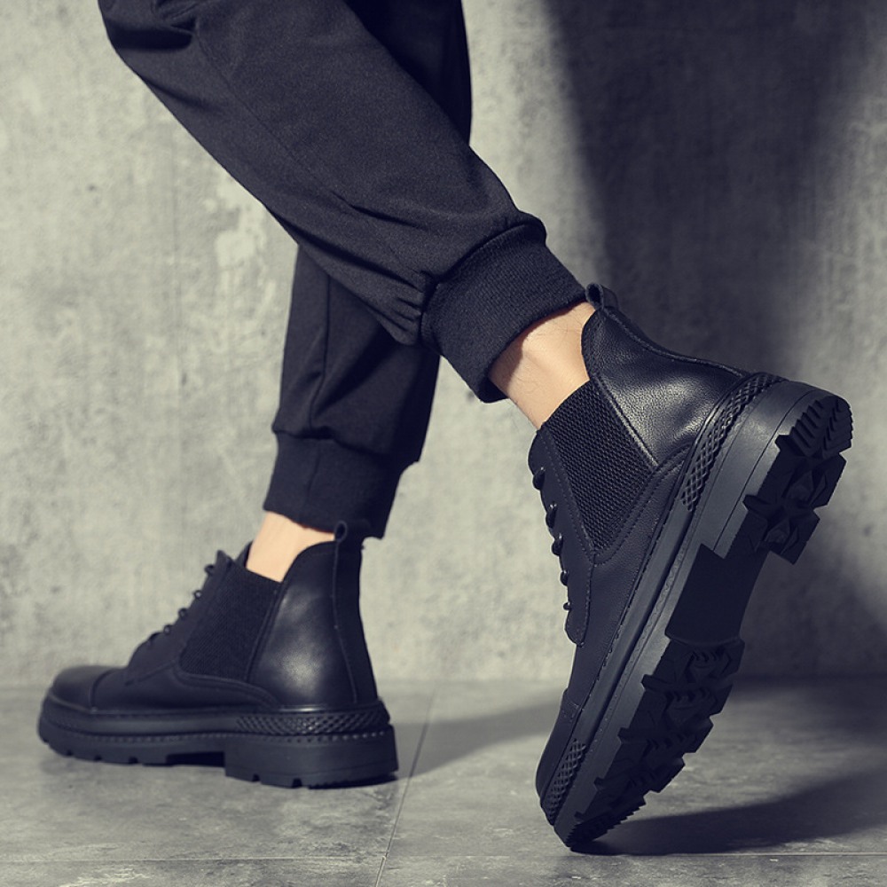 Martin Boots Men's Autumn New Fashion Casual Leather Boots Add Velvet Warm Leather High-Top Boots for Men
