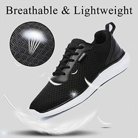 Men's Breathable Mesh Tennis Shoes Comfortable Gym Sneakers Lightweight Athletic Running Shoes Black