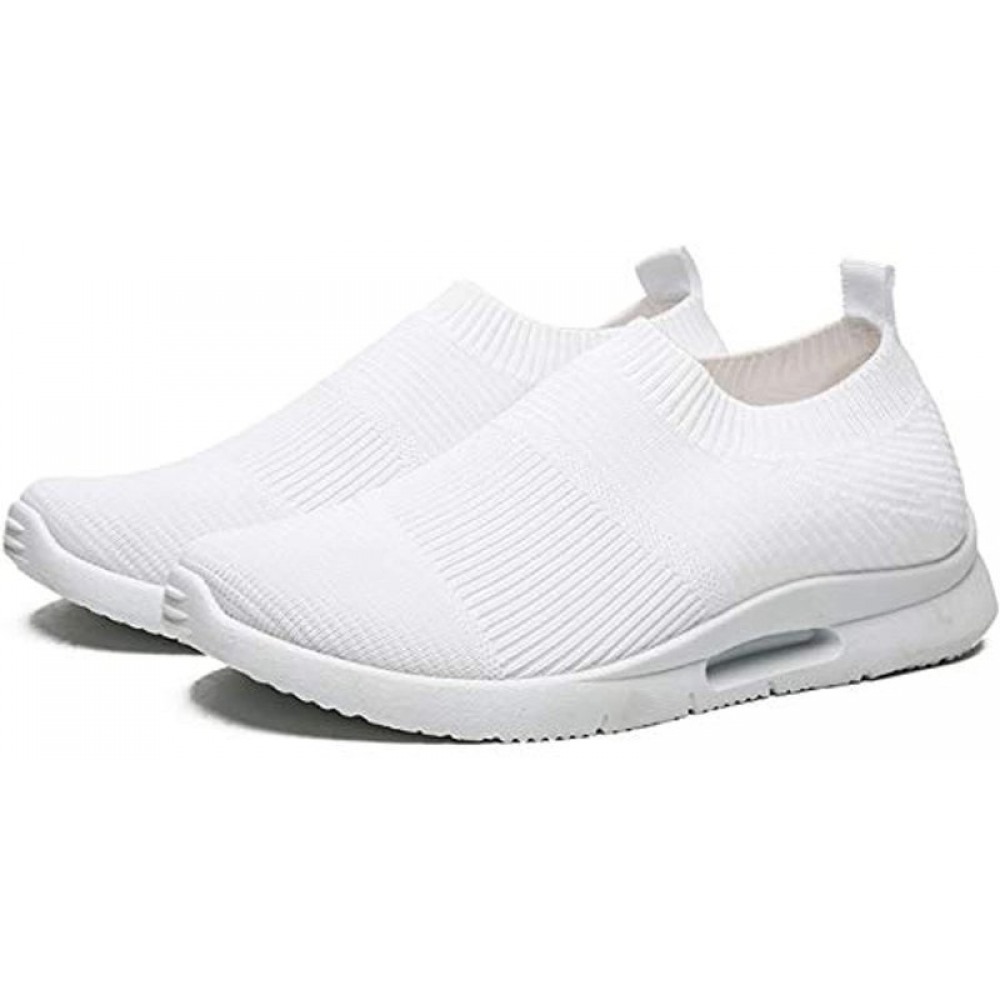 Womens Walking Shoes Mens Slip-On Sneakers Breathable Lightweight Athletic Running Shoes White