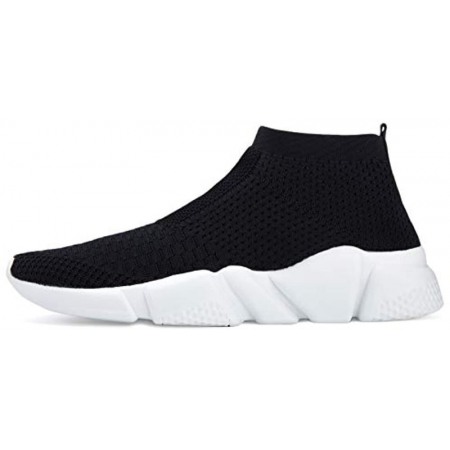 Men's Running Shoes Breathable Knit Slip On Sneakers Lightweight Athletic Shoes Casual Sports Shoes High Top Black