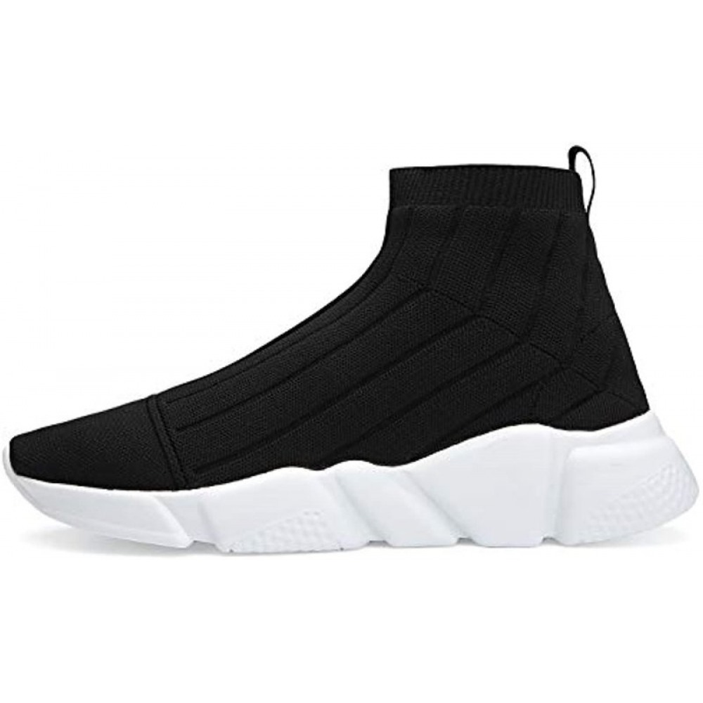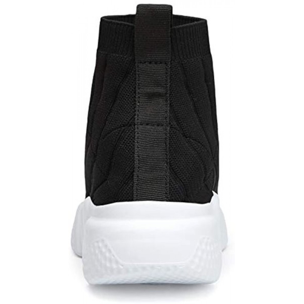 Men's Running Shoes Breathable Knit Slip On Sneakers Lightweight Athletic Shoes Casual Sports Shoes High Top Black